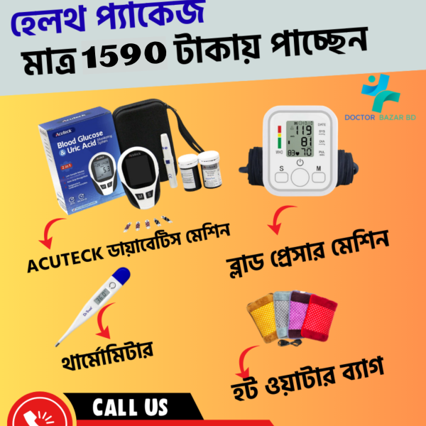 Acuteck ডায়াবেটিস মেশিন+ ব্লাড প্রেসার মেশিন+ হট ওয়াটার ব্যাগ +থার্মোমিটার